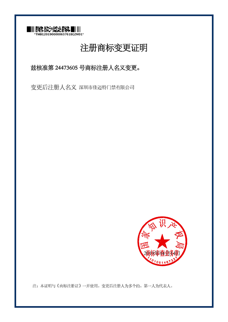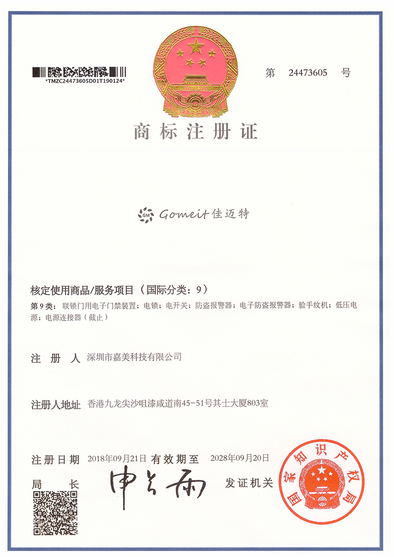 佳迈特商标注册证书